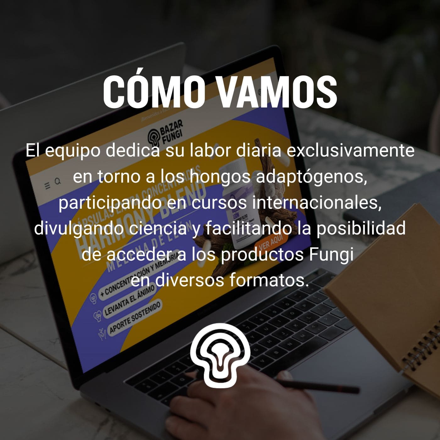 Además de producir adaptógenos, incluimos hongos gourmet, arte del Reino Fungi y literatura micológica como una celebración del Reino Fungi, con la intención de estimular el interés por la cultura en torno a los hongos y a modo de homenaje ante la belleza y sabiduría ancestral que encierran estos seres fantásticos.