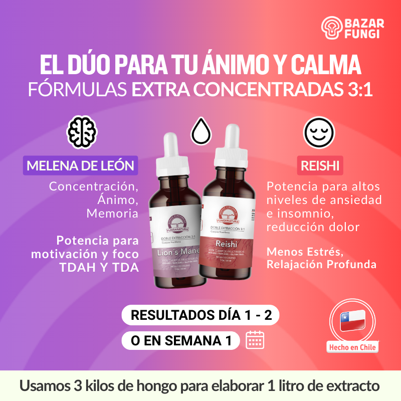 Para conocer en detalle las funciones demelena de león y Reishi, su origen y método de acción, revisa nuestro blog, donde encontrarás toda la información.