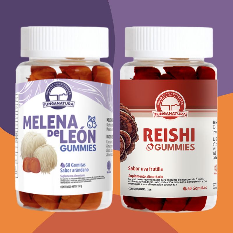 Disfruta del sabor y los beneficios de nuestro pack de gomitas veganas de Melena de León y Reishi concentrado de Funganatura, para que te ayuden en tu foco en el día a día y apoyen con calma a la vez.