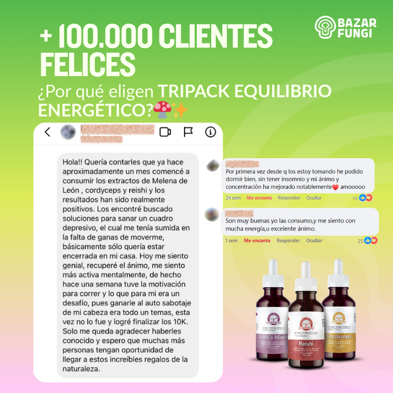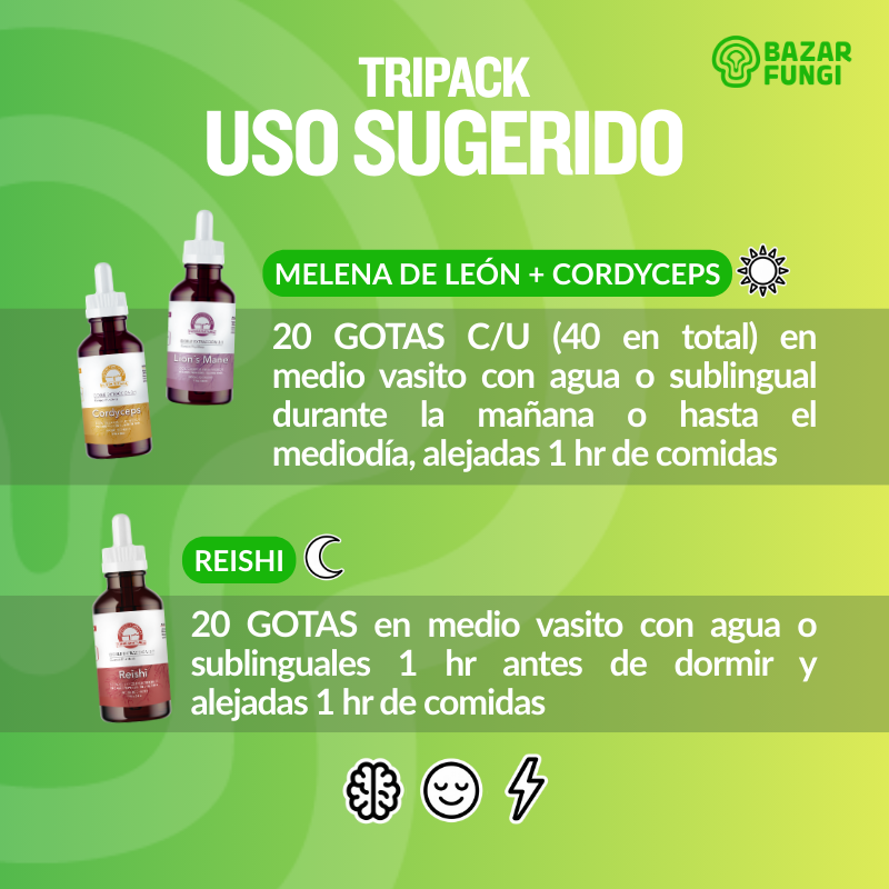 Ingredientes: 100% cuerpos fructíferos, agua purificada y alcohol vegetal pentadestilado.